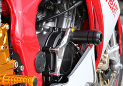 SATO RACING Engine Sliders 2024-25 Honda CBR500R features long-style black Delrin slider pucks mounted over the engine case on both sides with high strength anodized billet aluminum brackets and collars, to help protect the engine, fairings and other exposed parts around the core of the bike if you slide it on the track. 'No Cut' design - No fairing modifications required for installation. More info: CBR500R 2024-25 Engine Sliders More Parts for Honda CBR500R |