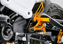 SATO RACING Race Stand Hooks + Sprocket Guard for 2022-24 Honda GROM fasten to the swingarm, for lifting the rear onto a spool-equipped paddock stand. These sturdy Hooks are made of high strength billet aluminum with a vivid Gold anodized finish. A Black-anodized aluminum Sprocket Guard is integrated into the left side hook assembly. (Update: Temporarily sold out. More in stock soon.) Product Details: GROM '22- Race Stand Hooks More Parts for 2022+ Honda GROM |
