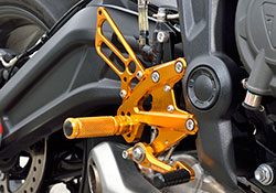 We now sell a version of our Kawasaki Ninja H2SX Rear Sets for the base model with the standard shift linkage (no quick-shifter), or for those who would prefer to delete the OEM quick-shifter for a more analog feel. Now in stock In Gold anodized finish. Product Details: Ninja H2SX Rear Sets More Parts for Ninja H2SX |