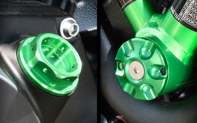| SATO RACING Oil Filler Cap for Kawasaki superbikes and many older models (Ninja ZX-6R / ZX-10R / ZX-14R / H2 / H2SX / Z-H2 / ZRX12000 / Ninja 250R / 300, etc.) are now in stock in GREEN anodized finish! We have had the ROUND style in Green for a while, but now we finally have the HEX style in Green. Product Details: Oil Filler Caps for Kawasaki More parts for Kawasaki |