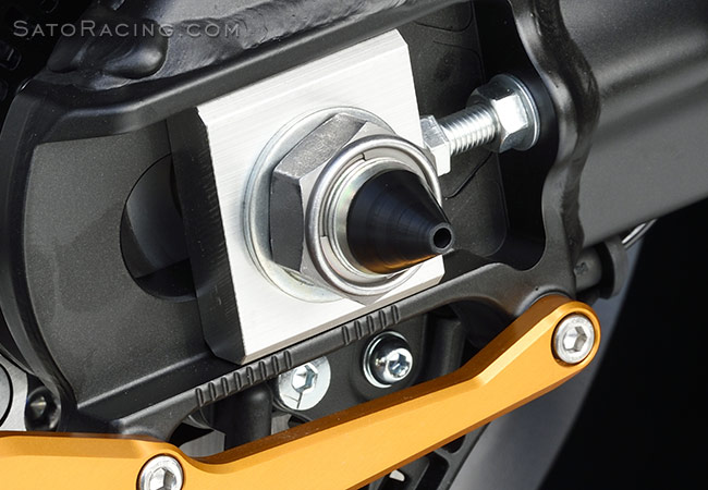 | The following photos show these Rear Axle Sliders installed on a 2015 YZF-R1 |