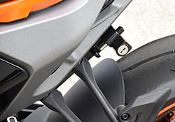 | SATO RACING Helmet Lock for 2024+ KTM 390 Duke is a heavy-duty helmet holder with a piston-style lock mechanism, providing a secure way to hang your helmet from the bike when parked. Helmet Lock installs in a discreet location on the left side sandwiched between the seat frame and passsenger peg holder bracket. Also fits 250 Duke. Includes 2 keys. Product Details: KTM 390 Duke '24- Helmet Lock More parts for 2024 390 Duke |